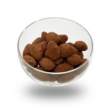 飴焚きしたアーモンドをチョコレートとココアパウダーでコーティングしました。