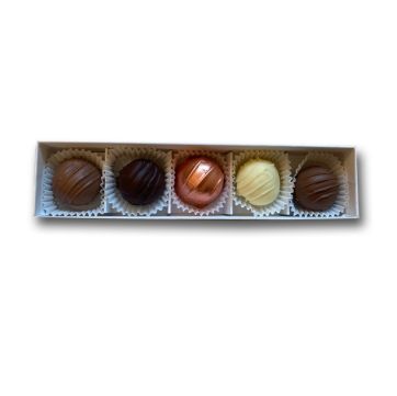人気のトリュフ5粒を、エリカオリジナルボックスにお詰め致しました。贈り物にいかがでしょうか。