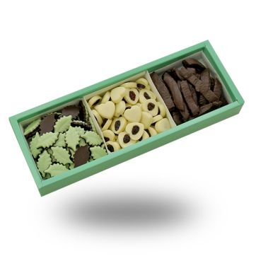 ミントグリーンのオリジナルBox入り、チョコレート3種類のお詰め合わせ。