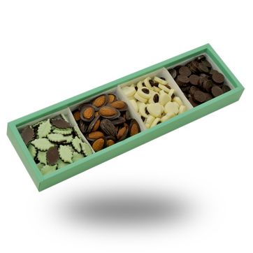 ミントグリーンのオリジナルBox入り、チョコレート4種類のお詰め合わせ。