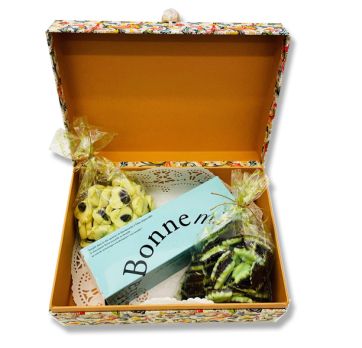 房付きのお箱に人気のマ・ボンヌミニ、ミント、ラム・レーズンをお詰め致しました。
